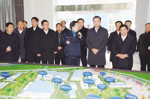 隨后,周春雨、白金明一行又趕赴淮安市,進車間,看項目,問規(guī)劃,先后來到淮安特鋼高新產業(yè)園、鹽堿科技產業(yè)園、淮安科教產業(yè)園、淮安生態(tài)新城區(qū)以及新型工業(yè)化成果展示中心進行參觀考察。