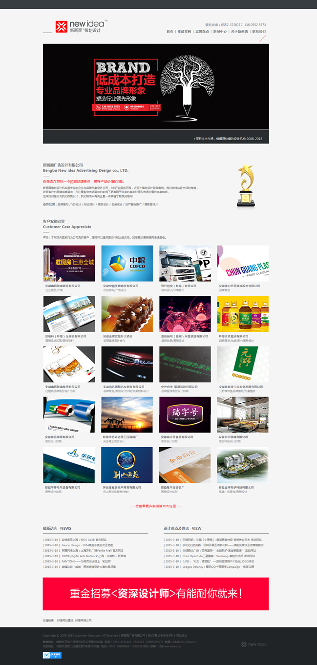 新畫面策劃設(shè)計機構(gòu)是專業(yè)的企業(yè)與品牌形象設(shè)計公司,7年行業(yè)服務(wù)歷程,近百個策劃設(shè)計服務(wù)案例。我們始終站在市場的角度,